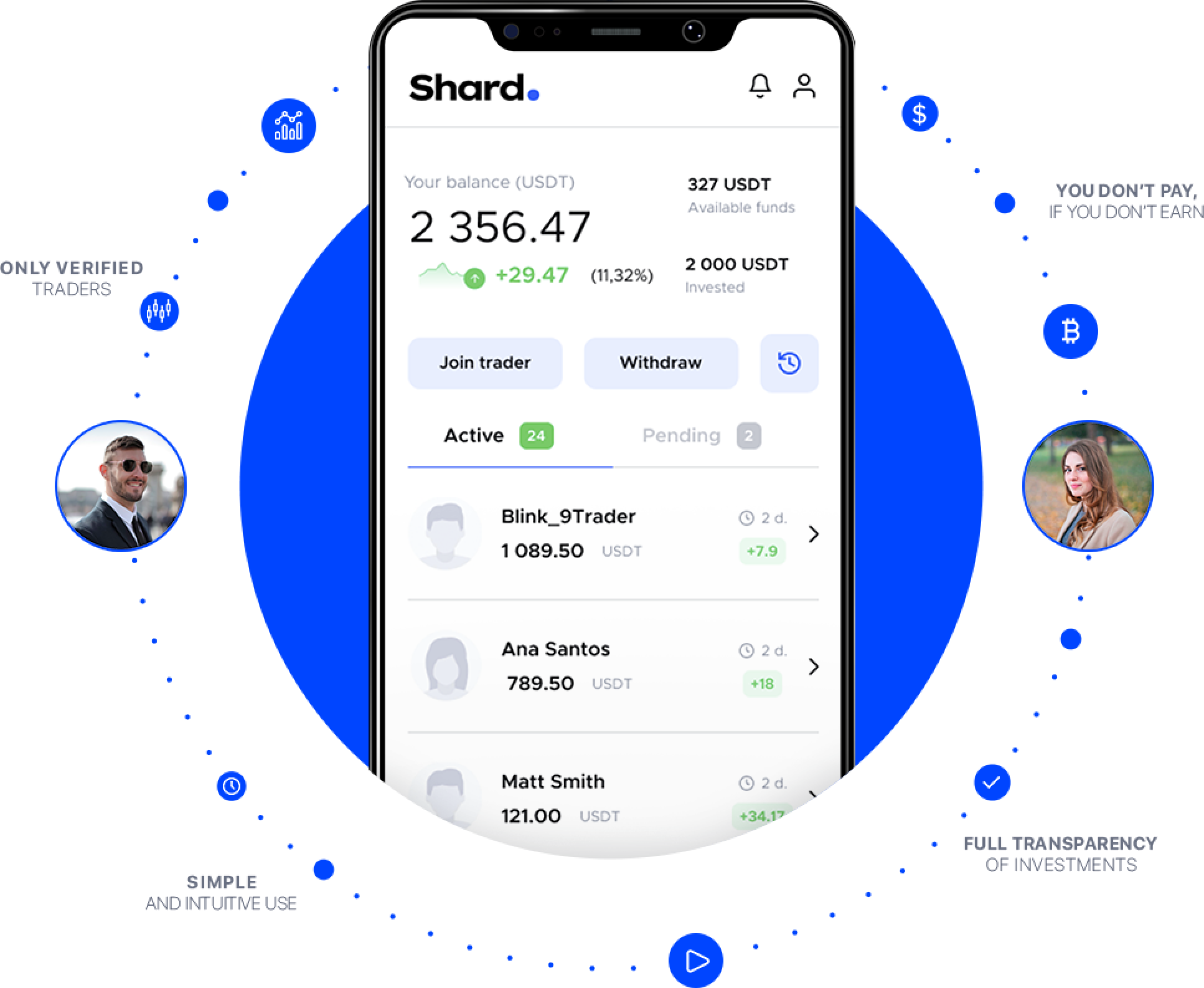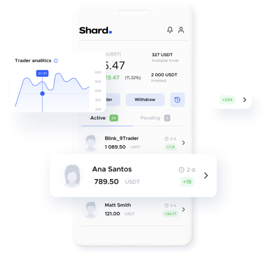 Trading with Shard is really easy. All it takes is to follow three simple steps -> Deposit, Choose Traders, Manage your funds.