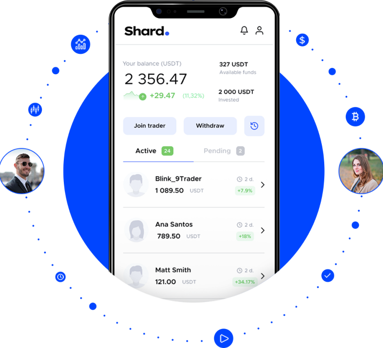 Trading with Shard is really easy. All it takes is to follow three simple steps -> Deposit, Choose Traders, Manage your funds.